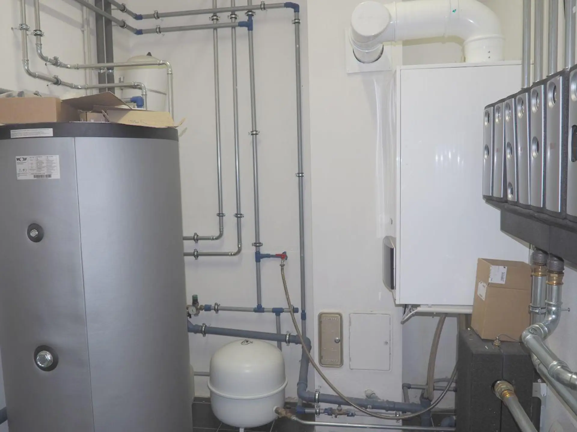 Beheizt wird es über eine Gaszentralheizung. Die Büroräume sind teilweise auch klimatisiert.