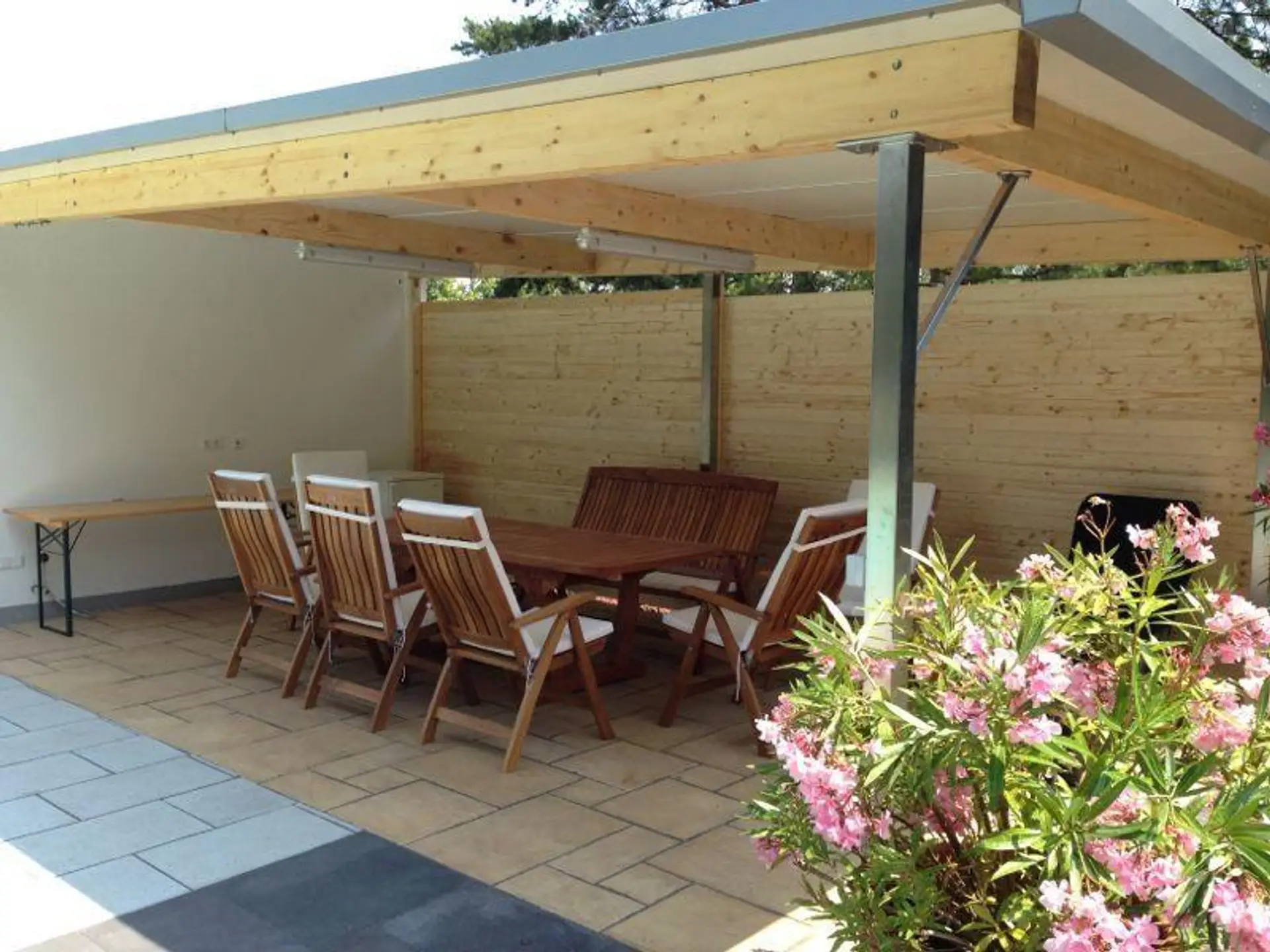 Weiters befindet sich auf dem Grundstück auch ein kleines Blockhaus mit einem Pool (Tiefe 1,9 m, beheizt über eine Luftwärmepumpe) und 4 Brunnen.